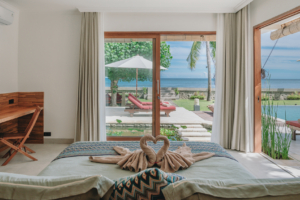 Your villa is also inaugurated according to Balinese customs. In the garden of the villa you will find a temple where offerings from the staff take place every day. Offerings consist of incense, bread, rice and flowers. These offerings take place to please the gods and to keep evil spirits at bay. You’ll not only find these rituals at your villa but basically everywhere, especially at entrances to buildings and stairs, so watch your step! Many buildings have stone guards at the entrance often with typical Balinese cloths swathed around them.
